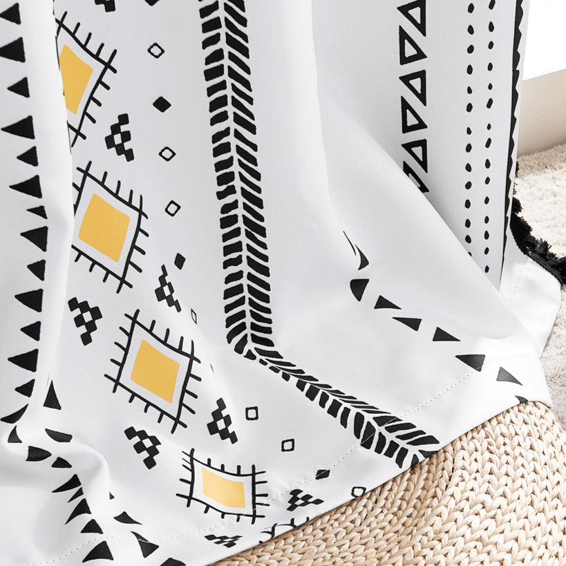 - Ainutlaatuinen Boheemi Muotoilu: Yhdistää mustia etnisiä kuvioita ja eloisia keltaisia timantteja valkoisella pohjalla, luoden modernin ja etnisen ilmeen.