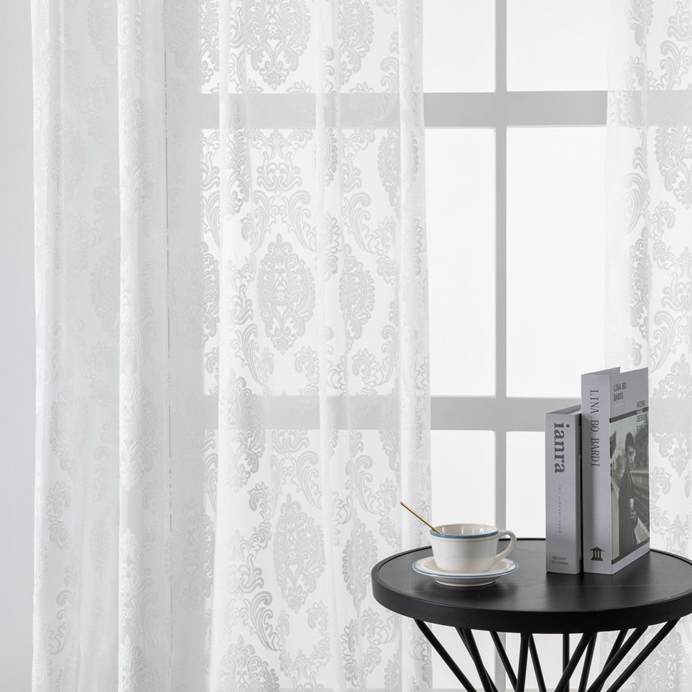 Muuta kotisi ilmettä helposti tällä Elegantti valkoinen valoverho damastikuviolla