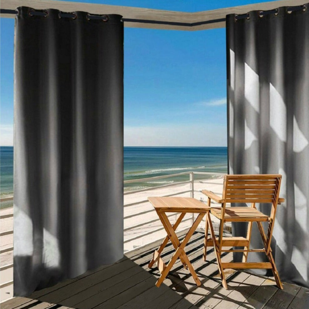 Piristä ulkotilaasi Harmaa säänkestävä ulkoverho renkailla -tyylillä