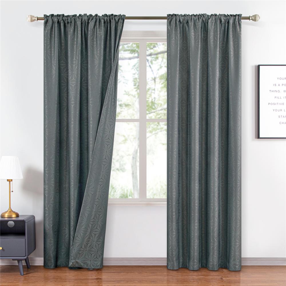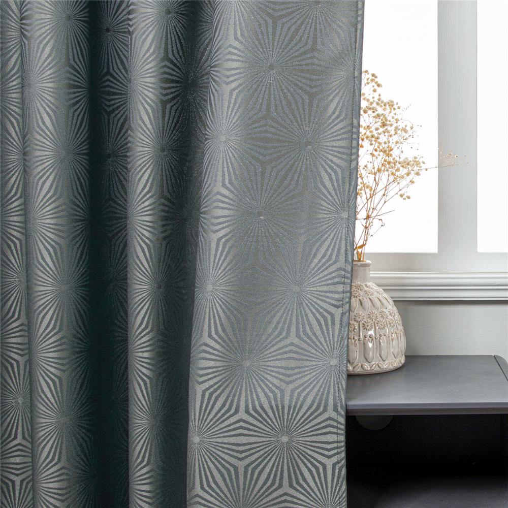 Ainutlaatuinen muotoilu: Harmaa verho geometrisella kuviolla luo katseenvangitsijan
