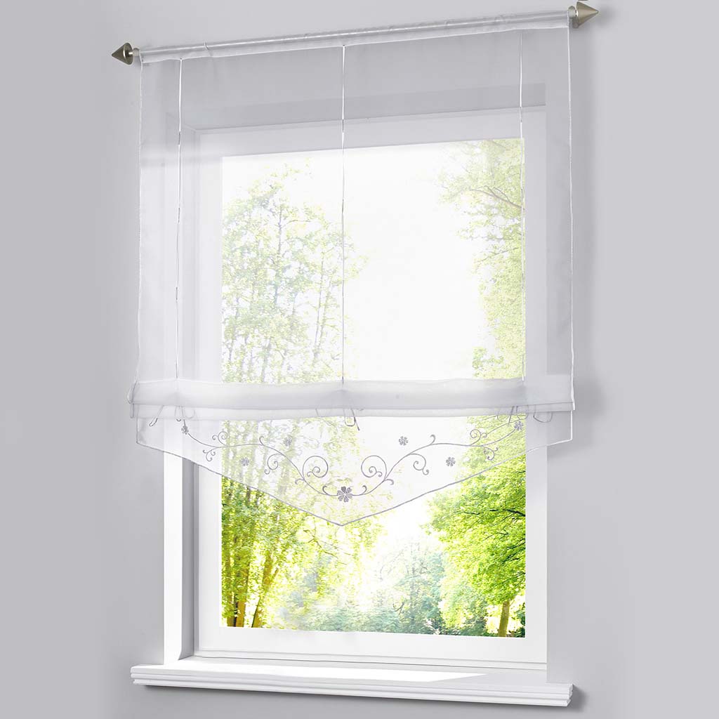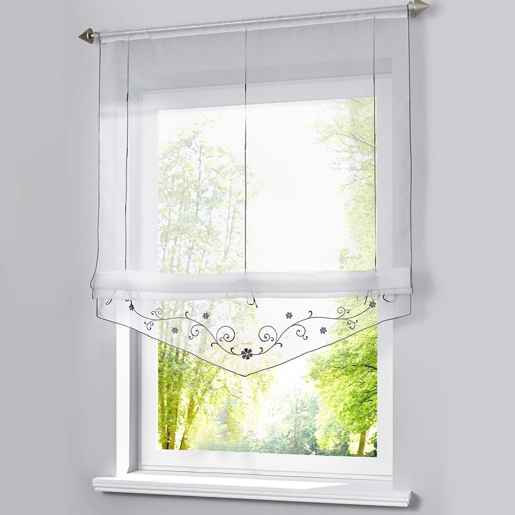 Tämä verho on valmistettu laadukkaasta, läpikuultavasta materiaalista, joka päästää valon lempeästi sisään luoden raikkaan ja avaran tunnelman keittiöösi. Sen alareunaa koristaa hienovarainen ja tyylikäs kirjailu, jossa on romanttisia kukkakuvioita ja orgaanisia koukeroita harmaan sävyissä. Kirjailu antaa verholle persoonallisen ja hienostuneen ilmeen, joka on samanaikaisesti moderni ja ajaton. Laskostyylisen mekanismin ansiosta voit helposti säätää verhon korkeutta ja sitä, kuinka paljon ikkunasta on esillä. Päästä auringonpaiste sisään tai luo intiimimpi tunnelma – valinta on sinun, ja kaikki tämä onnistuu yhdellä kädenliikkeellä. Verho tuo ikkunaan kevyen ja ilmavan tunteen, joka sopii erinomaisesti keittiön käytännölliseen mutta viihtyisään ilmapiiriin.