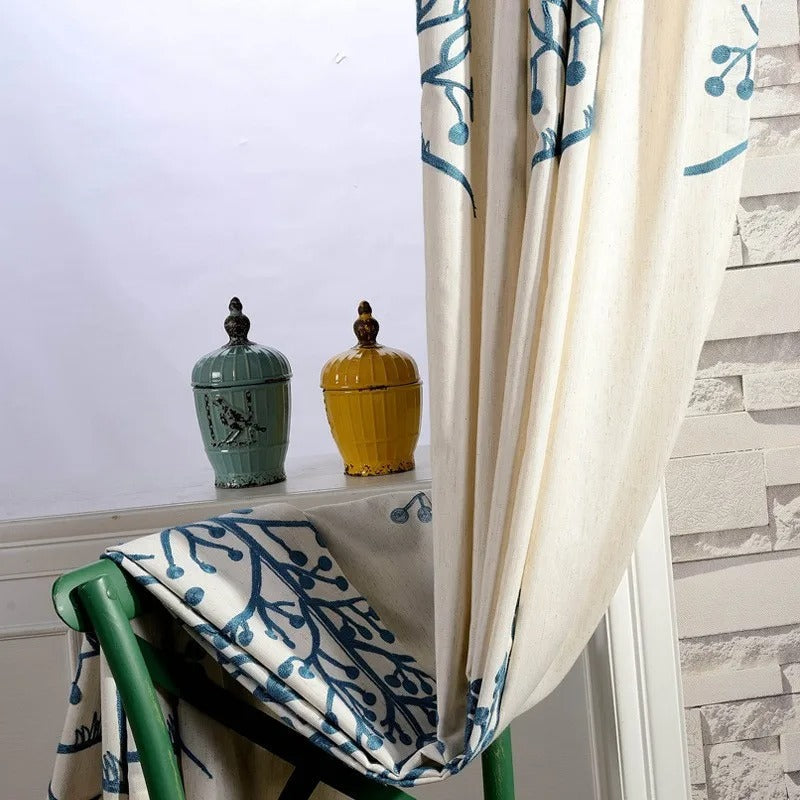 Kirjailtu pellavatyylinen pimennysverho – Ominaisuudet: