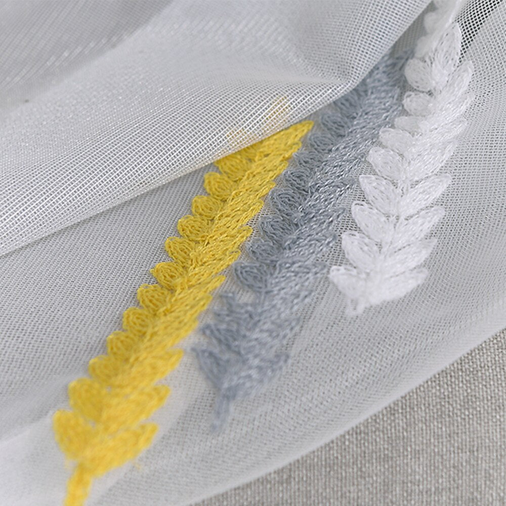 - Moderni geometrinen kuvio: Tyylikkäät keltaiset ja harmaat kirjaillut pystyraidat antavat verholle persoonallisen ilmeen.