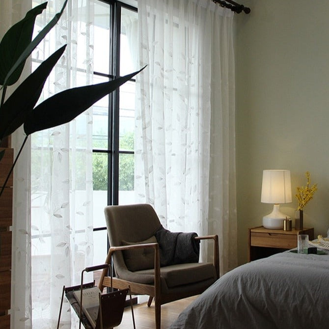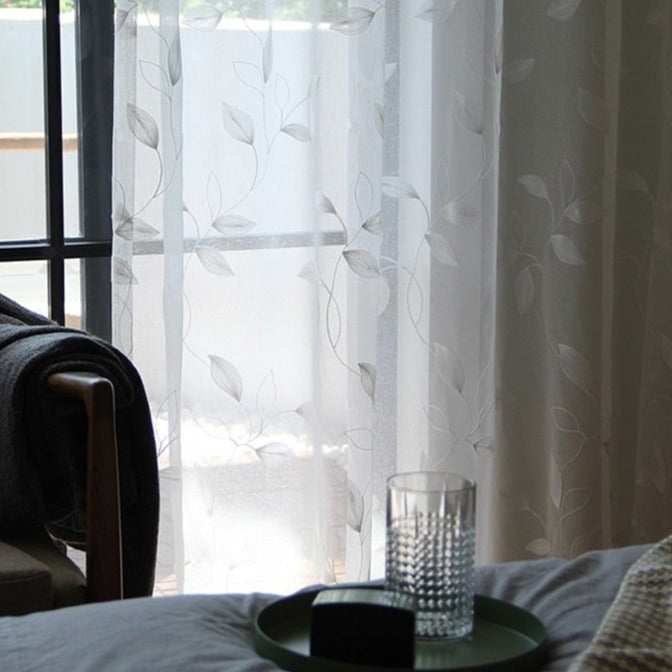 Miksi valita tämä Kirjailtu valoverho hennoilla lehtikuvioilla?