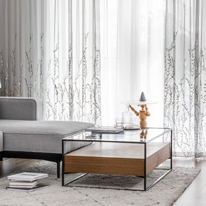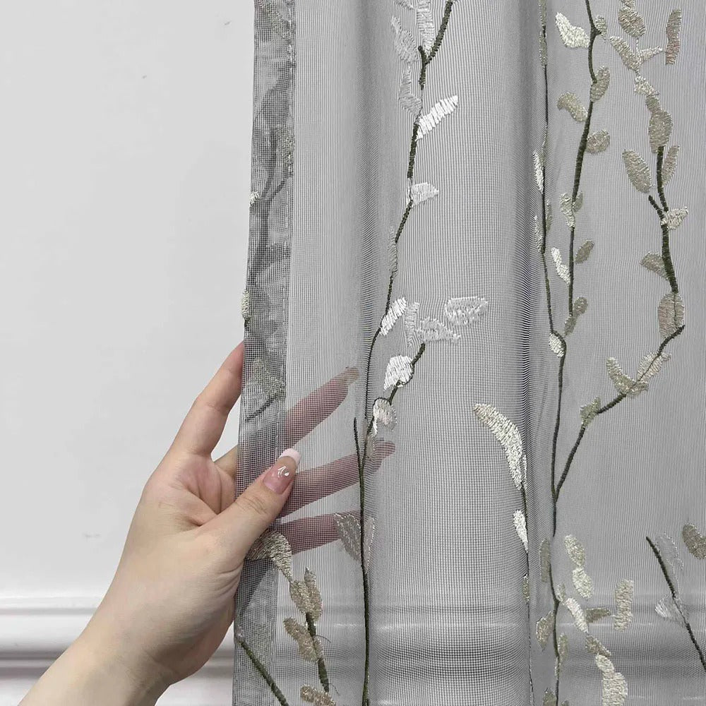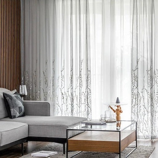 Aistikas sisustus ja yksityisyyttä: Läpikuultava verho kirjaillulla oksakuviolla