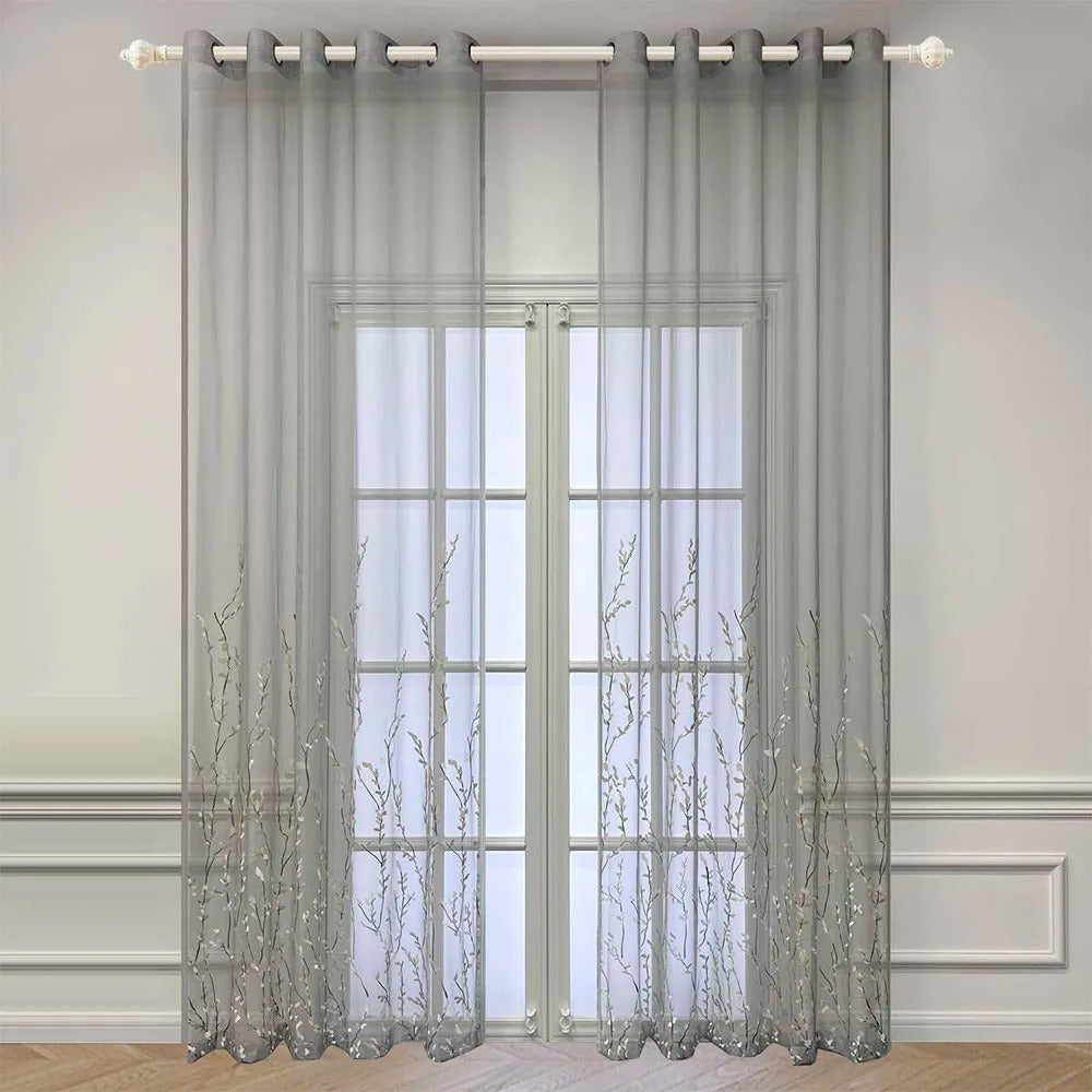 Tuo luonto sisään kotiisi: Läpikuultava verho kirjaillulla oksakuviolla