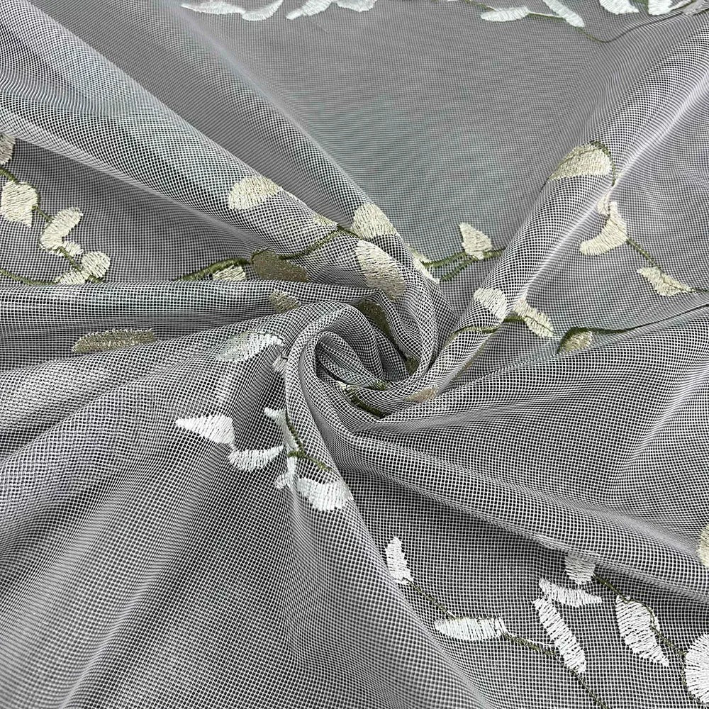 Ominaisuudet ja edut: Läpikuultava verho kirjaillulla oksakuviolla