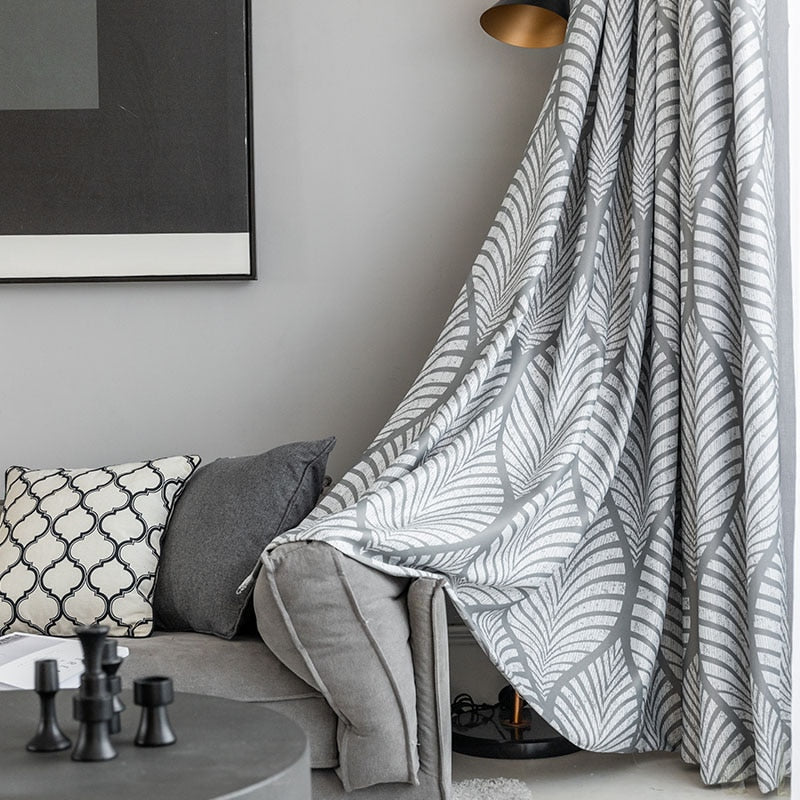 Laadukas Lehtikuvioinen pimennysverho makuuhuoneeseen tekee paljon enemmän kuin vain estää valon. Se muuttaa koko huoneen tunnelman ja parantaa elämänlaatuasi. Tämä verho on suunniteltu yhdistämään käytännöllisyys ja estetiikka saumattomasti. Sen rauhallinen, harmaan ja valkoisen sävyinen lehtikuvio sulautuu kauniisti monenlaisiin sisustustyyleihin, luoden elegantin ja harmonisen ilmeen. Nauti paremmasta unenlaadusta, lisääntyneestä yksityisyydestä ja makuuhuoneesta, joka tuntuu todella omalta turvapaikaltasi, missä voit latautua päivän haasteisiin.