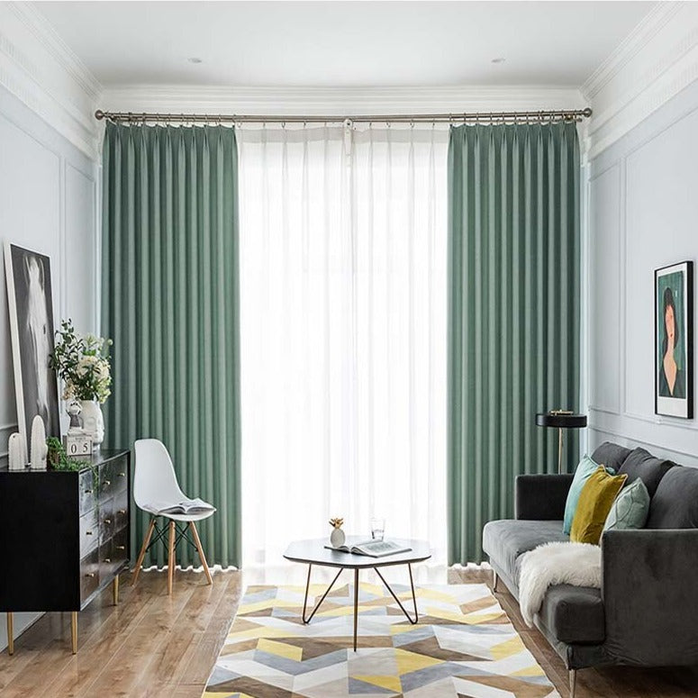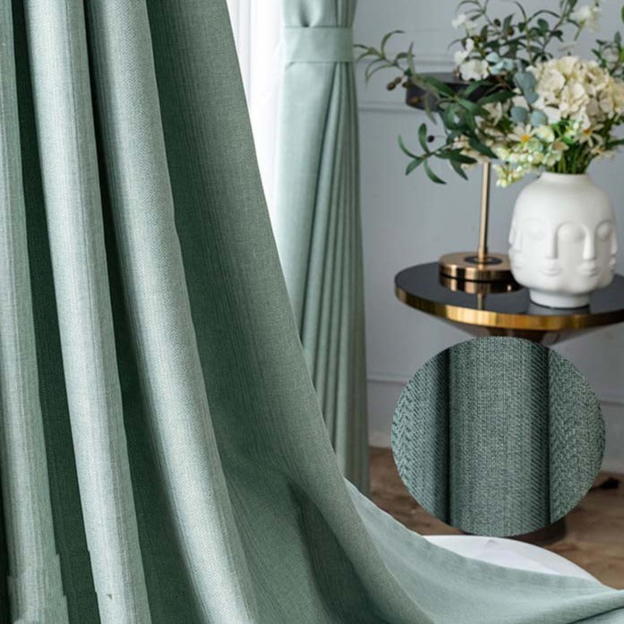 Merenvihreä pimennysverho pellavamaisella tekstuureilla – Luo täydellinen tunnelma kotiisi