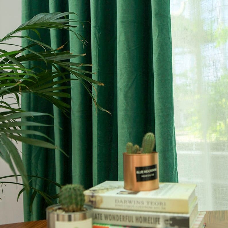 Metsänvihreä samettinen pimennysverho purjerenkailla – Luo täydellinen tunnelma kotiisi