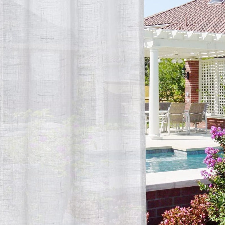 Tämän pellavatyylisen ulkoverhon parvekkeelle ja pergolaan materiaali on valittu huolellisesti kestämään ulkoilman haasteita, kuten aurinkoa ja kevyttä tuulta, säilyttäen samalla kauniin ulkonäkönsä vuodesta toiseen. Vaikka verho on pellavatyylinen, se on valmistettu säänkestävästä materiaalista, joka on helppo pitää puhtaana ja vaatii vain vähän huoltoa. Verhon läpikuultava kudos päästää luonnonvalon kauniisti läpi, mutta suodattaa tehokkaasti kirkkaimman auringonpaisteen, luoden miellyttävän varjoisan ja viileämmän tilan. Se ei ainoastaan lisää esteettisyyttä, vaan myös parantaa viihtyisyyttä ja käytännöllisyyttä ulkoelämääsi.