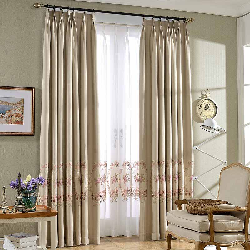 Luo tyylikäs ja rauhallinen tila Pimennysverho kirjaillulla kukkareunuksella