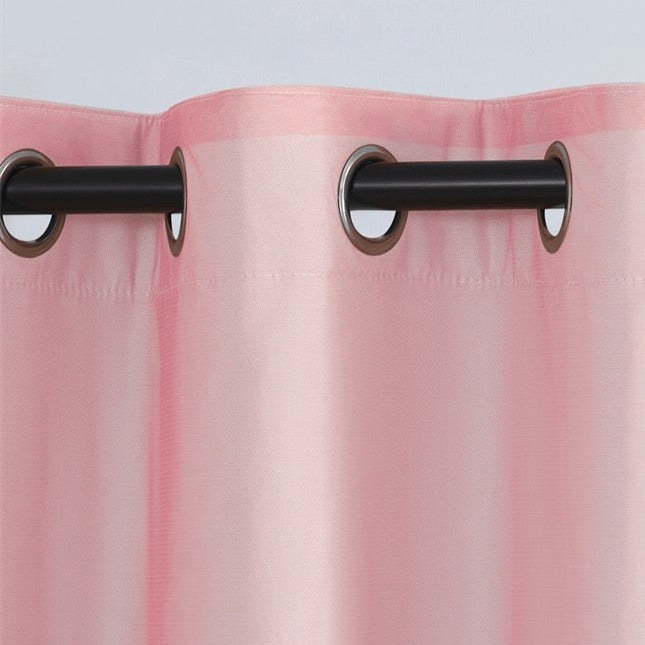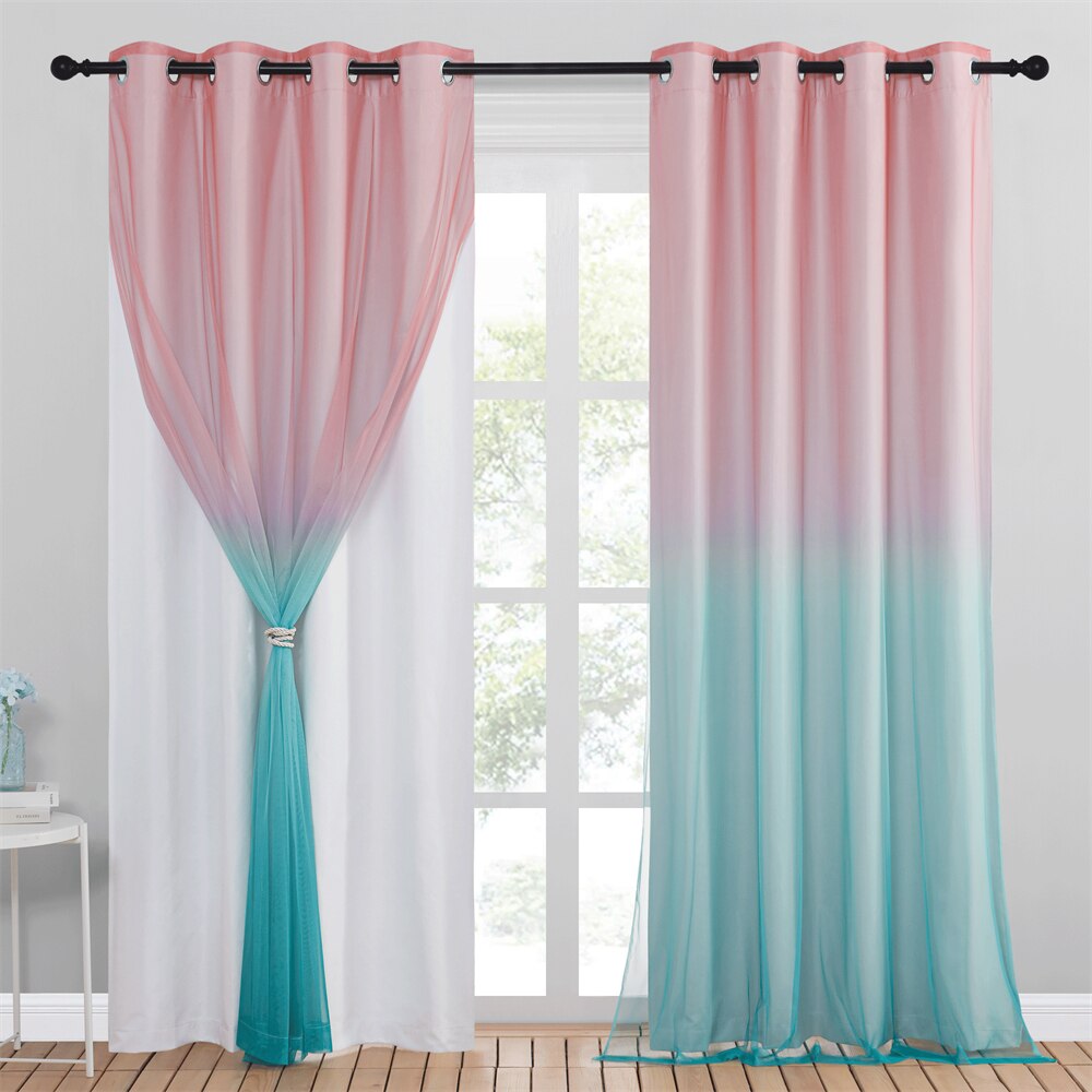 Haluatko päivittää kotisi sisustusta ja luoda samalla rauhallisen ja tyylikkään tunnelman? Tämä upea pimennysverho liukuvärjätyllä ohuella verholla on täydellinen valinta! Sen pehmeät vaaleanpunaisen ja turkoosin sävyt sulautuvat kauniisti toisiinsa luoden ainutlaatuisen ja unenomaisen ilmeen. Kuvittele, miten auringonvalo siivilöityy läpi ohuen kankaan, heittäen huoneeseen lempeitä värisävyjä ja luoden rentouttavan ilmapiirin. Tämä verho ei ainoastaan pimennä huonetta tarvittaessa, vaan myös lisää ripauksen eleganssia ja modernia charmia mihin tahansa tilaan.