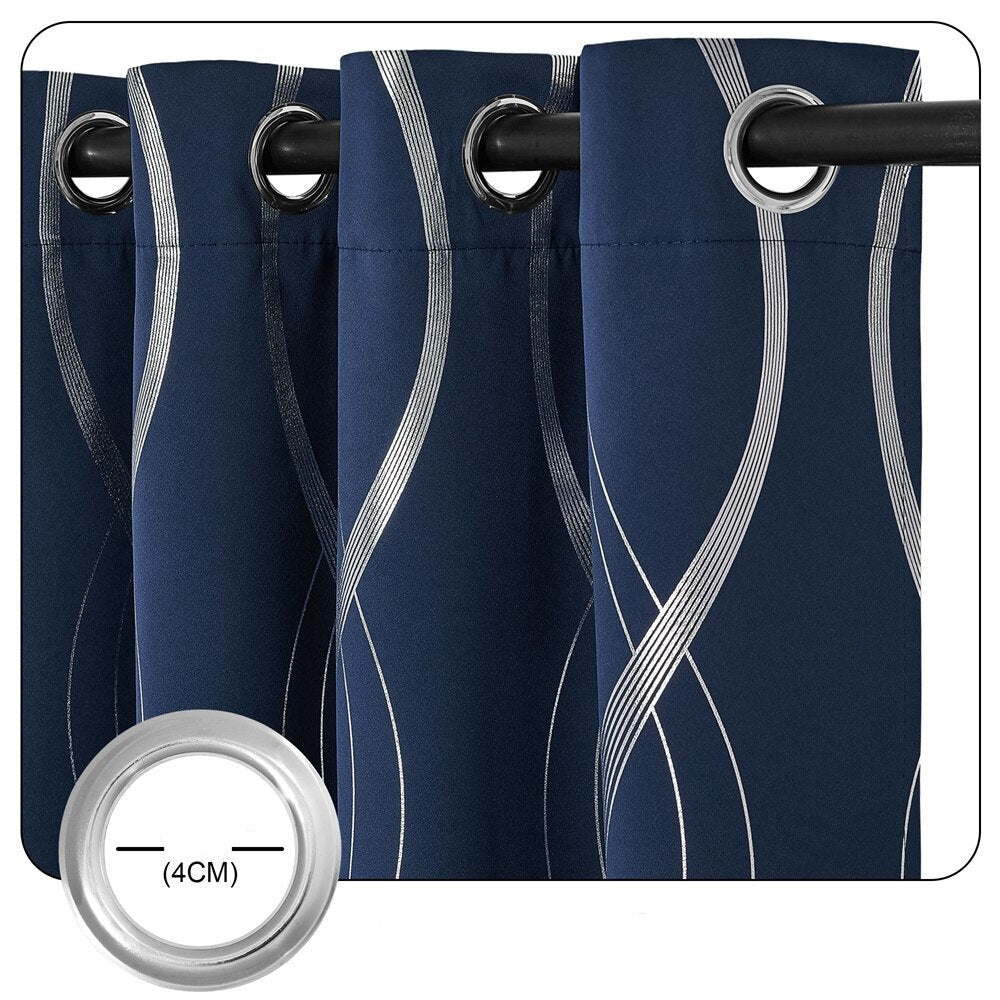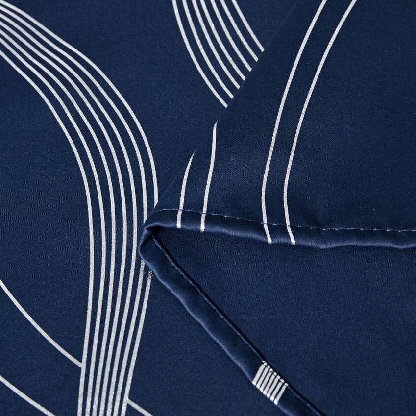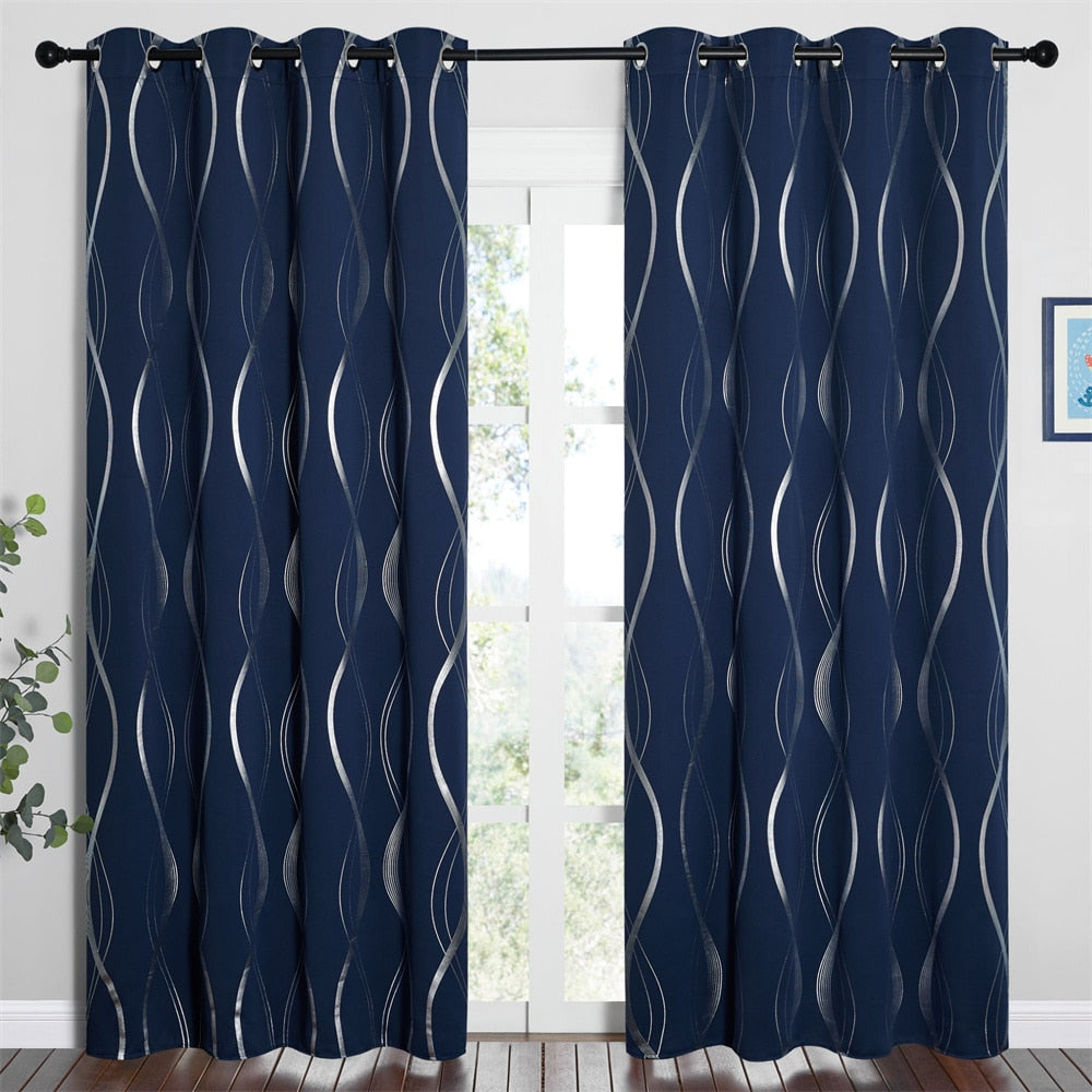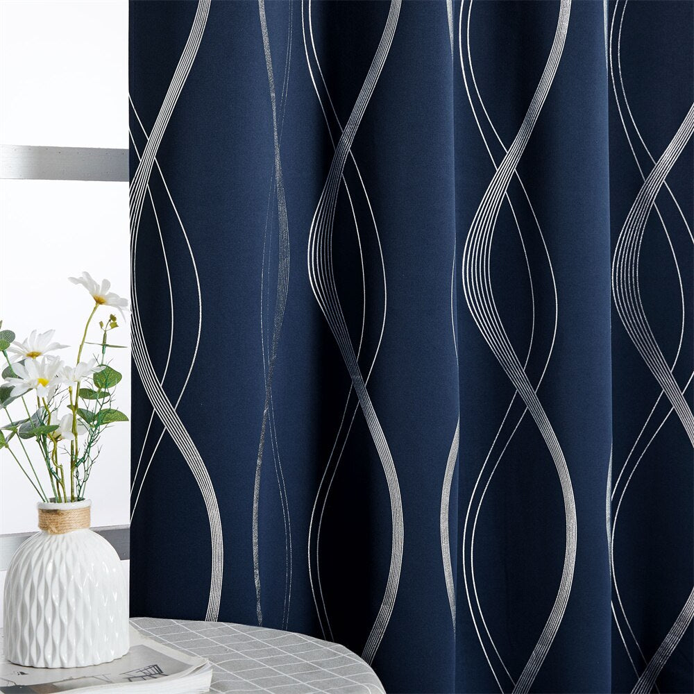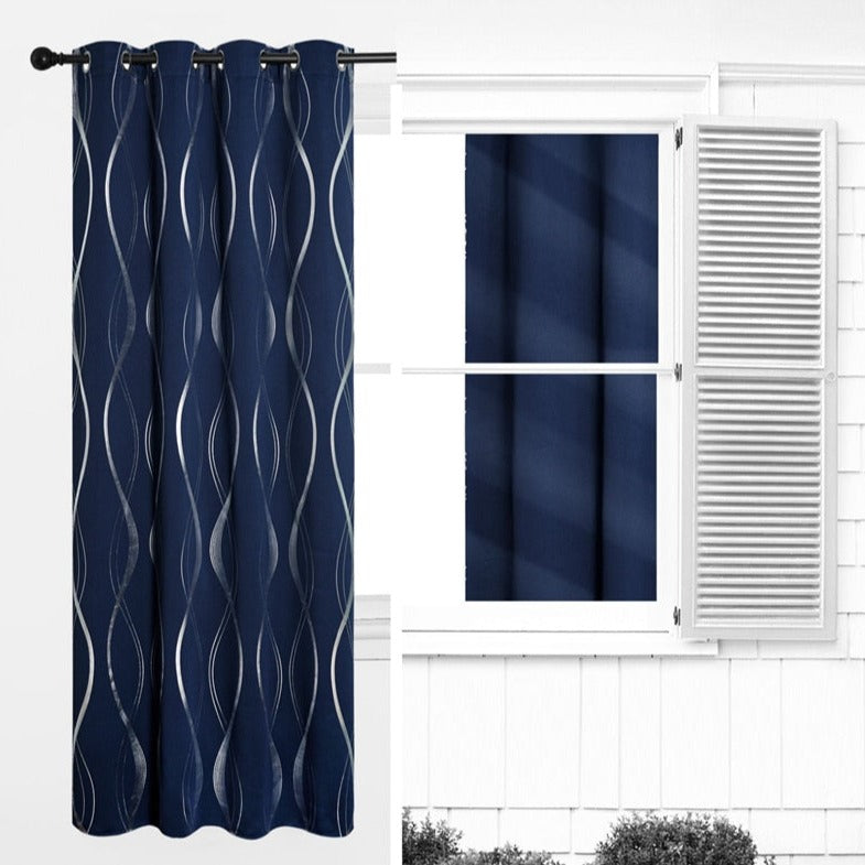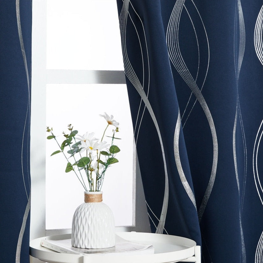 Sininen pimennysverho hopealla aaltokuviolla – Täydellinen tunnelmanluoja kotiisi