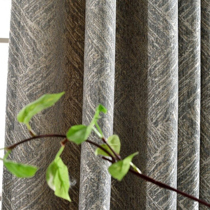 Etsitkö täydellistä yhdistelmää tyyliä ja toimivuutta kotiisi? Tässä on ratkaisu: meidän teksturoitu moderni pimennysverhomme. Kuvittele, kuinka tämän verhon ainutlaatuinen, hienostunut kudottu pinta tuo ripauksen luonnonläheistä eleganssia mihin tahansa huoneeseen. Sen lämmin harmaan ja beigen sävyjen leikki luo syvyyttä ja luonnetta, täydentäen saumattomasti niin minimalistista kuin perinteisempääkin sisustusta. Tämä verho ei ainoastaan näytä hyvältä, vaan se on suunniteltu tarjoamaan täydellisen pimennyksen, taaten rauhalliset yöunet ja suojan auringonvalolta päivällä. Se luo kutsuvan ja rauhallisen tunnelman, jossa voit rentoutua ja tuntea olosi kotoisaksi, päivästä tai vuorokaudenajasta riippumatta.