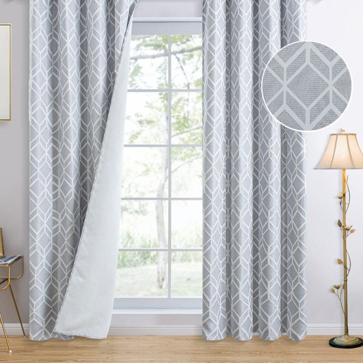 Miksi valita tämä Vaaleanharmaa pimennysverho geometrisella kuviolla?