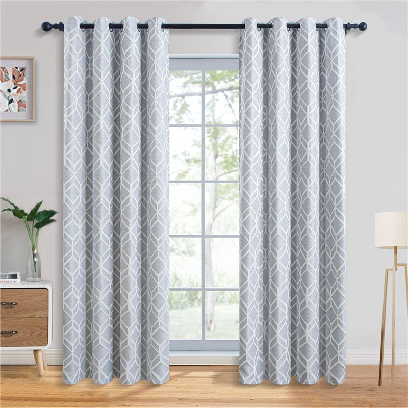 Tyylikäs Vaaleanharmaa pimennysverho geometrisella kuviolla kotiisi