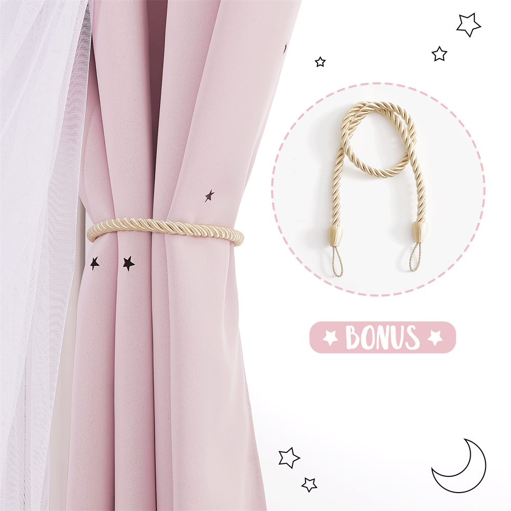 - Mukana tulevat verhonpidikkeet: Kauniit köysikiinnikkeet vaaleanpunaisella yksityiskohdalla mahdollistavat verhojen siistin sidonnan sivuille.