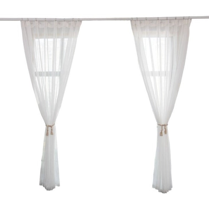 Koe eleganssi ja toiminnallisuus Valkoinen kimalteleva läpikuultava valkoverho -tuotteessamme. Suunniteltu tuomaan tyyliä ja viihtyisyyttä kotiisi, se yhdistää hienostuneen muotoilun ja käytännöllisyyden.