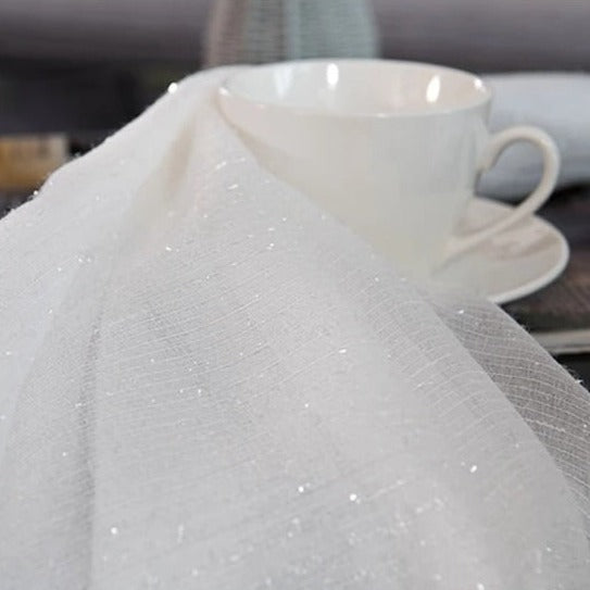 Anna kotisi loistaa Valkoisen kimaltelevan läpikuultavan valkoverhon avulla!