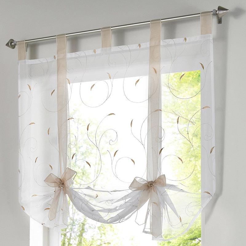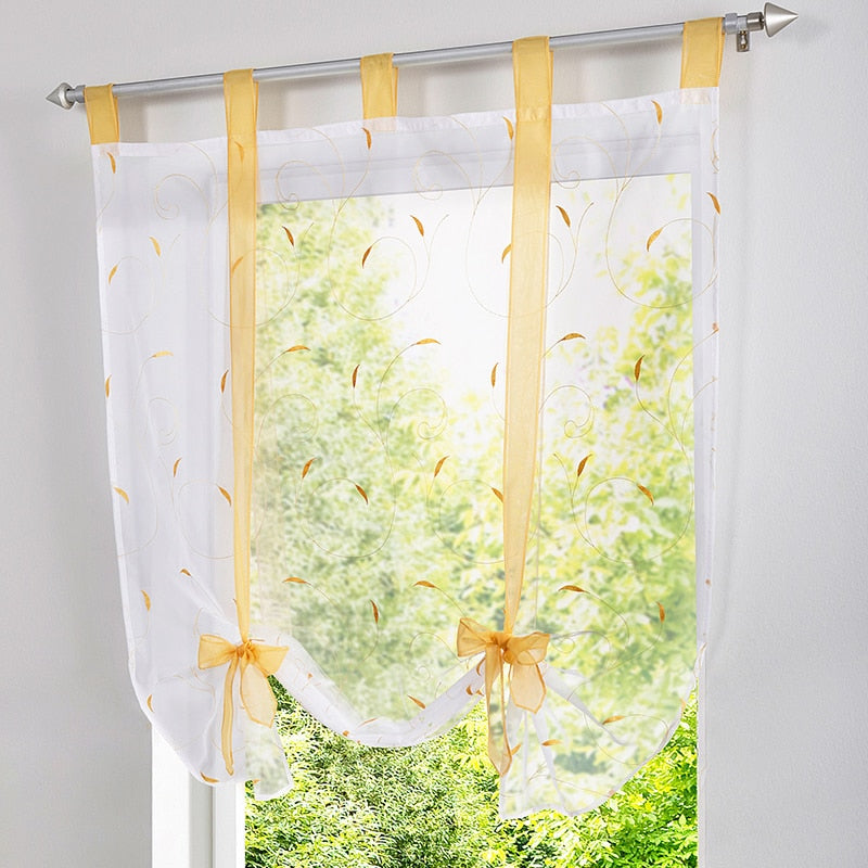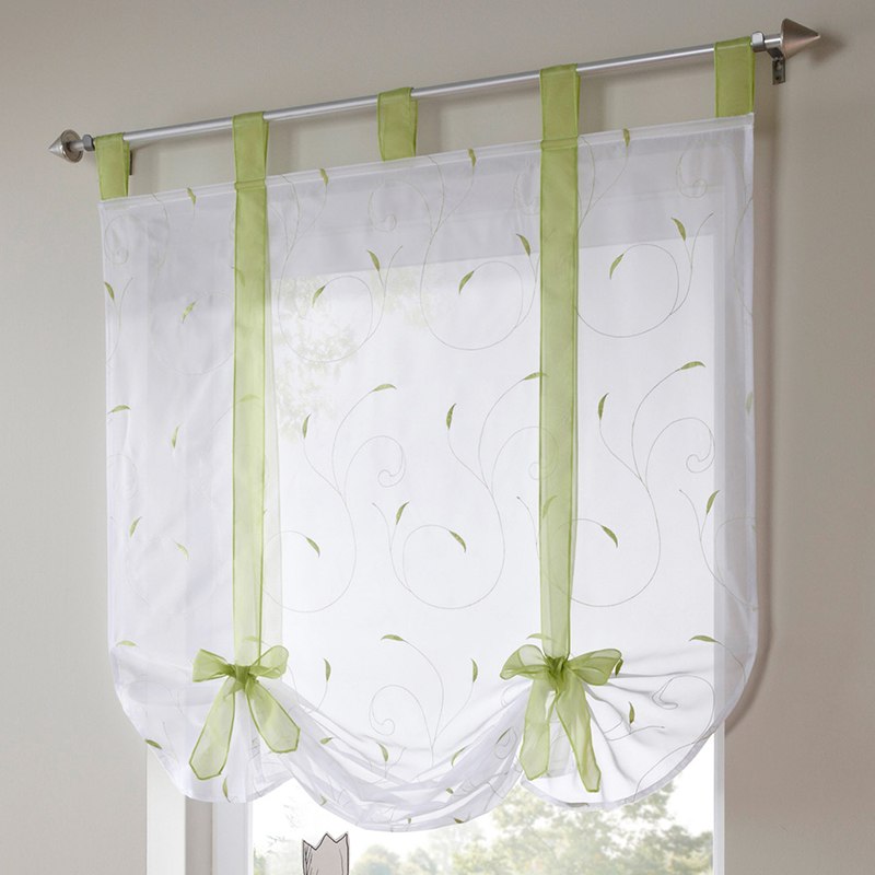 Piristä kotiasi: Valkoinen nostoverho punaisella kirjailulla