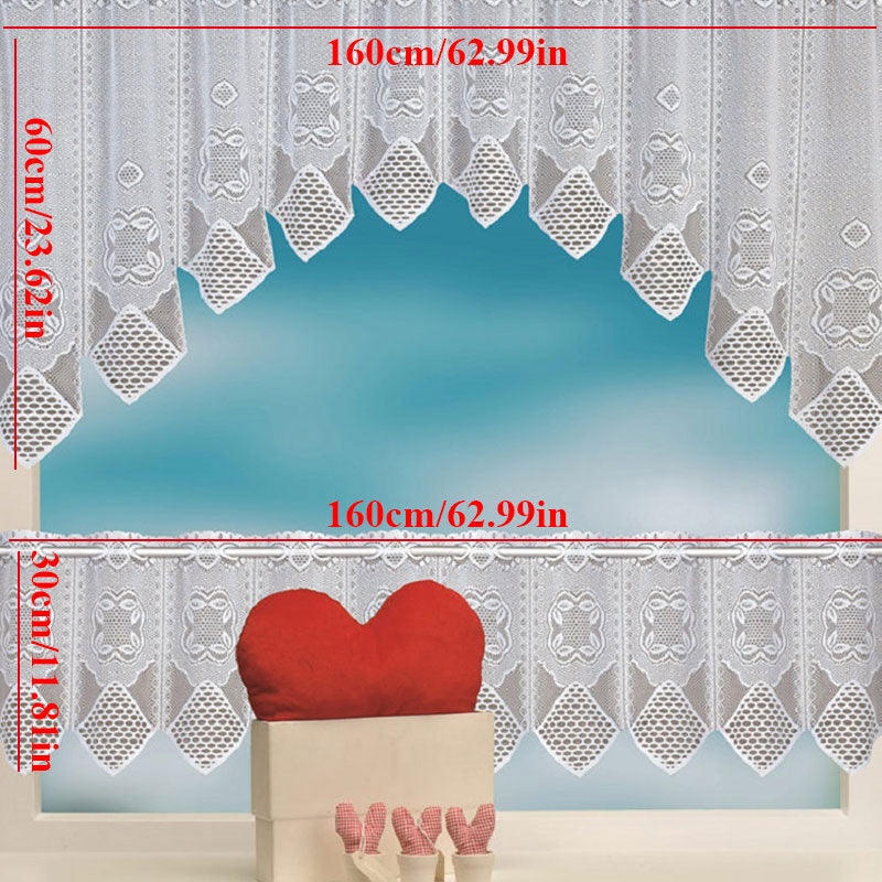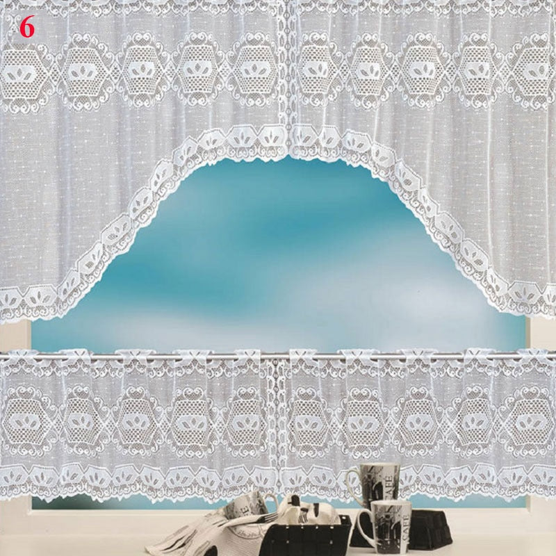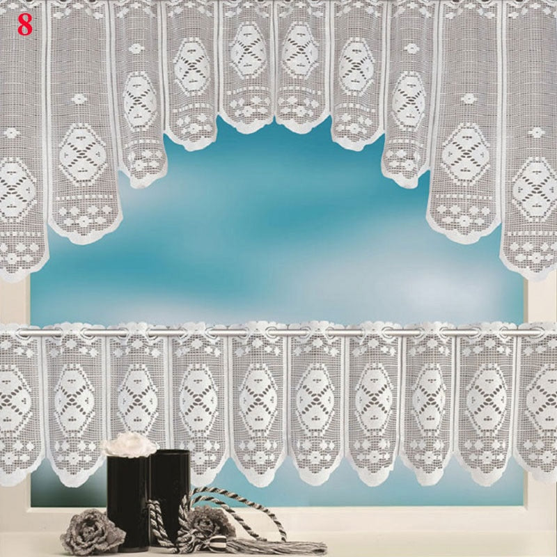 Koe eleganssi ja toiminnallisuus Valkoinen pitsinen keittiöverhosetti -tuotteessamme. Suunniteltu tuomaan tyyliä ja viihtyisyyttä kotiisi, se yhdistää hienostuneen muotoilun ja käytännöllisyyden.