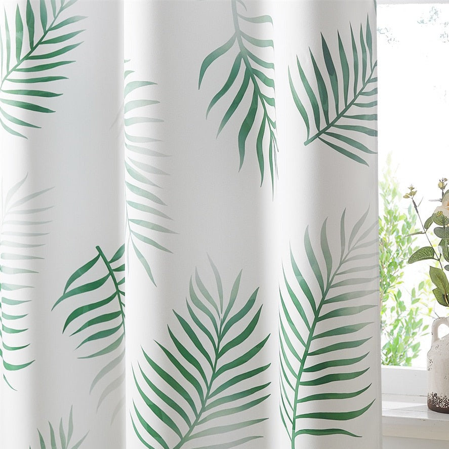 Viimeistele kotisi tyyli tällä upealla Valkoinen verho vihreällä trooppisella lehtikuviolla