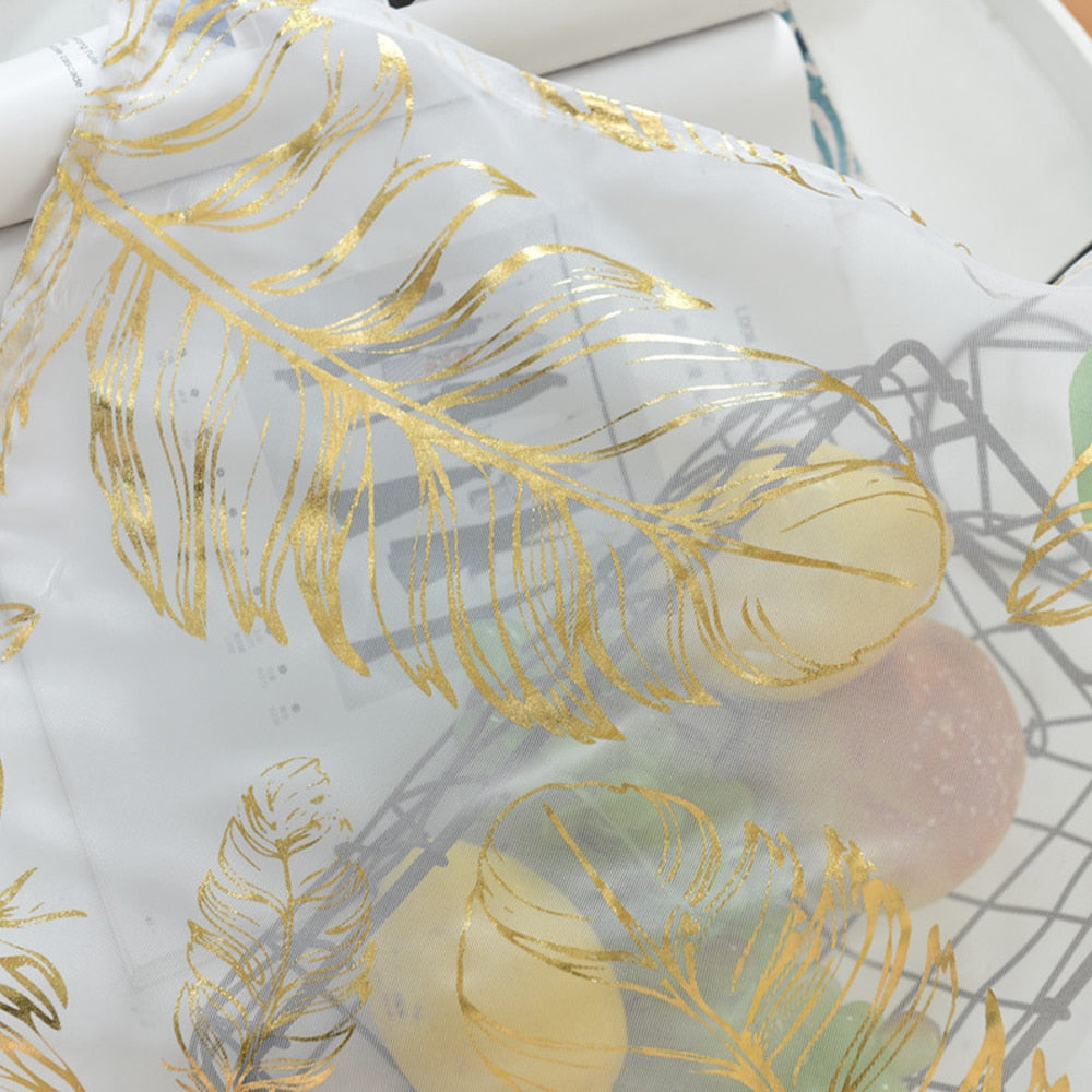 Etsitkö sitä täydellistä yksityiskohtaa, joka muuttaa huoneesi tunnelman kertaheitolla? Tämä upea valoverho, jota koristaa hienostunut kultainen höyhenkuvio, on juuri se mitä tarvitset. Se tuo kotiisi ripauksen ylellisyyttä ja keveyttä, luoden samalla ainutlaatuisen ja kutsuvan ilmapiirin. Kuvittele, kuinka auringonvalo siivilöityy kauniisti läpi, korostaen kultaisten höyhenten hienostunutta kiiltoa ja täyttäen tilan lämpimällä, pehmeällä valolla. Se on kuin taideteos, joka leikkii valon kanssa ja luo jokaiseen hetkeen ripauksen taianomaisuutta.