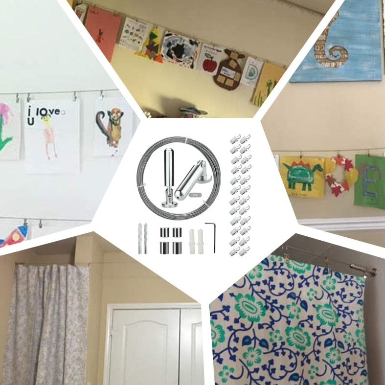 Etsitkö modernia ja vaivatonta ratkaisua verhojen ripustamiseen? Tämä verhovaijerisetti on suunniteltu juuri sinua varten, tehden verhojen asennuksesta ennennäkemättömän helppoa ja nopeaa. Unohda raskaat ja tilaa vievät perinteiset verhotangot, ja päivitä kotisi ilme tyylikkäällä, minimalistisella ja käytännöllisellä verhovaijerijärjestelmällä. Se ei ainoastaan luo avaramman ja valoisamman tunnelman tilaan, vaan myös antaa sinulle vapauden ripustaa verhot juuri haluamallasi tavalla, tarjoten samalla tukevan ja luotettavan kiinnityksen.